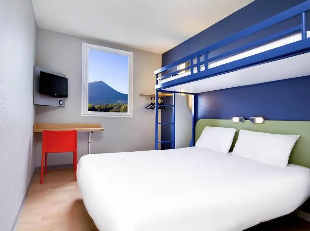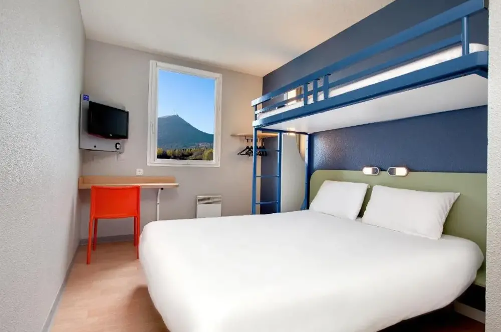 Ibis Budget Clermont Ferrand Nord Riom offers comfortable accommodations with essential facilities including free parking, family rooms, and non-smoking options. Guests can enjoy a very good breakfast and take advantage of accessible features for disabled travelers. The property is conveniently located near several attractions, such as Angelo just 100 meters away, Gare SNCF Riom-Châtel-Guyon train station within 1.5 kilometers, and Le Fadeaway at 1.1 kilometers. Nearby landmarks include Staue de Blaise Pascal (13 km), Parc de la Treille (8 km), and Mont Querrier (5 km). Additional nearby points of interest are Michelin Adventure Museum (12 km), Vichy – Charmeil Airport (35 km), and Roanne Renaison Airport (68 km).